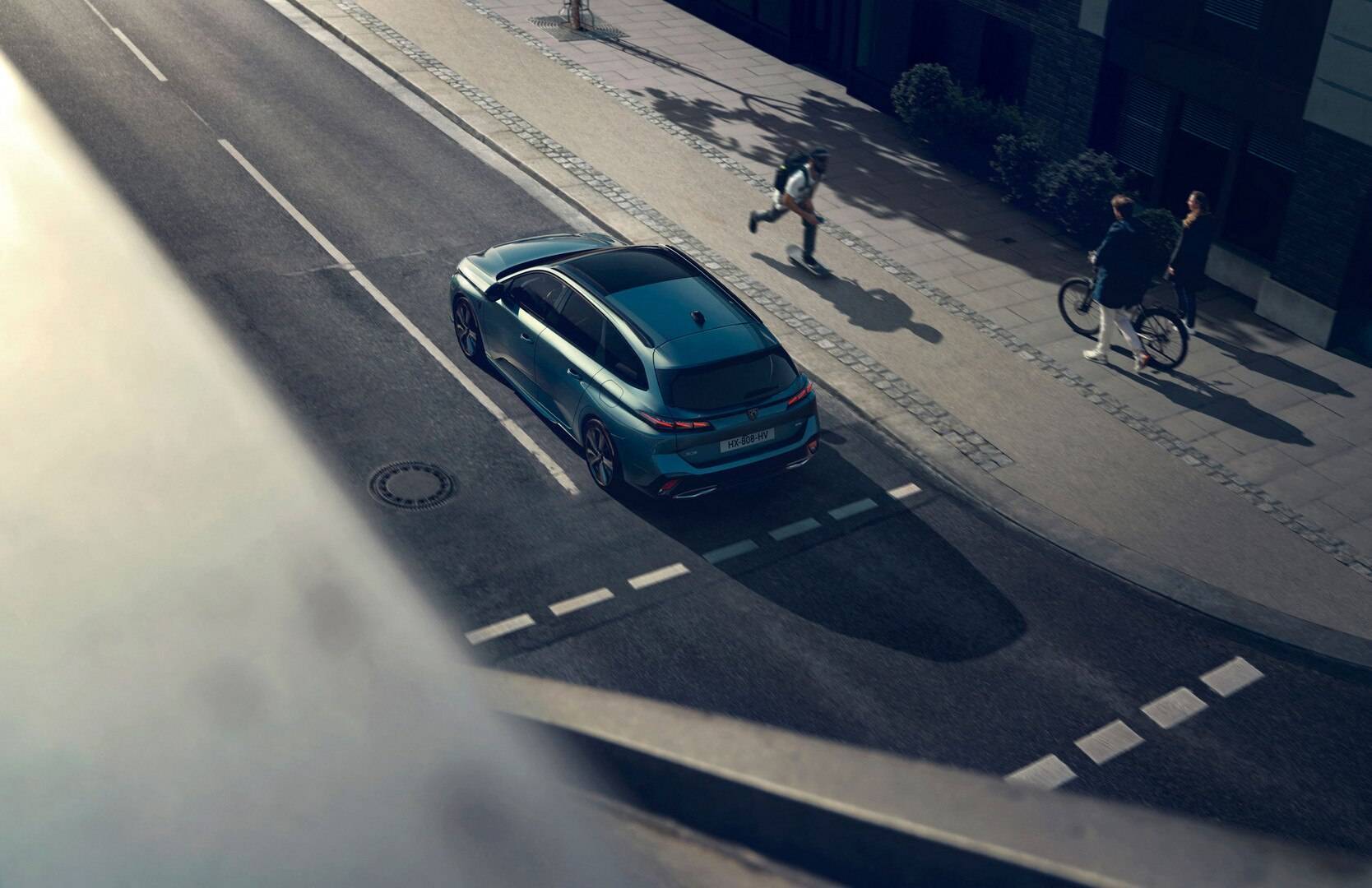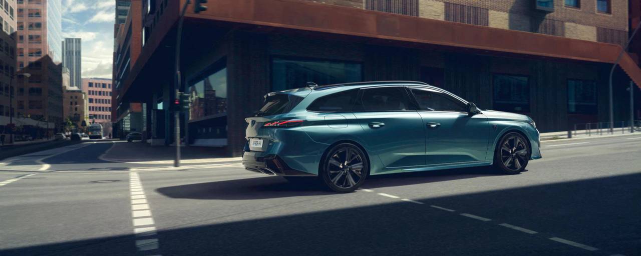 Jaunā PEUGEOT 308 SW universāla tehnoloģisko un moderno raksturu papildina aizmugurējo lukturu 3D Full LED gaismas paraksts ar īpašu 3D nagu formas izskatu. Pilnībā integrēti, tie veido muskuļotu un spēcīga izskata aizmuguri, bet tā aerodinamiku veicina pazeminātā jumta līnija un uzlabotās riteņu arkas. Plašs vieglmetāla disku klāsts un aprīkots ar A un A+ klases riepām, kas izvēlētas to efektivitātes un veiktspējas dēļ, apstiprina jaunā PEUGEOT 308 SW universāla sportisko raksturu.