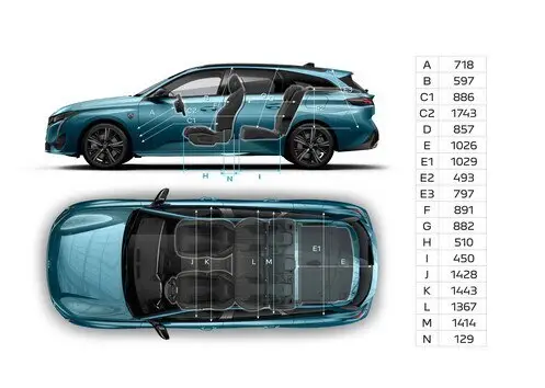 JAUNĀ PEUGEOT 308 SW BAGĀŽAS NODALĪJUMA IZMĒRI
