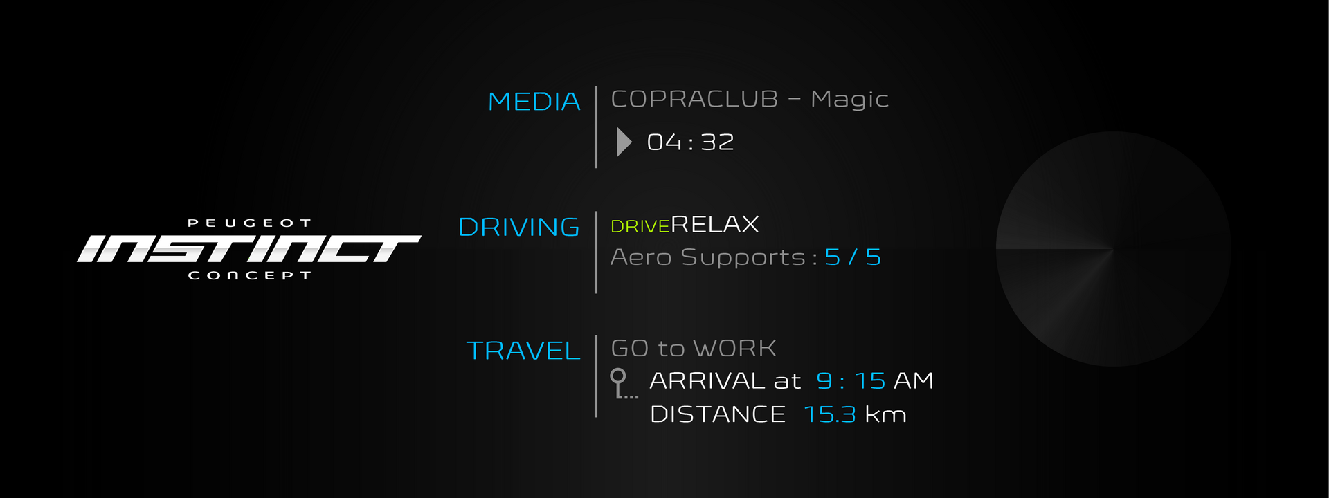Autonomā automašīna ar jaunām lietotnēm paver nebijušas radošuma iespējas. Ar PEUGEOT INSTINCT CONCEPT un Responsive i-Cockpit ir optimizēts tas, kas mūsu zīmola jaunākajiem modeļiem jau ir nesis panākumus. Ir iedzīvināti jauni veidi, kas ļauj piedzīvot baudpilnu braucienu ar automašīnu. Vai tās būtu saskarnes, sistēmas arhitektūra vai stils. Nekur nav rakstīts, ka autonomai automašīnai jābūt vienmuļai gan izskatā, gan lietošanā.